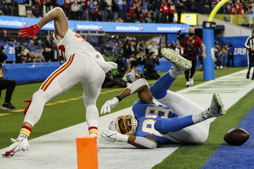 20 hours agoChargers tight end Donald Parham is carried off the field after an injury against the Kansas City Chiefs in the first half Thursday Dec.